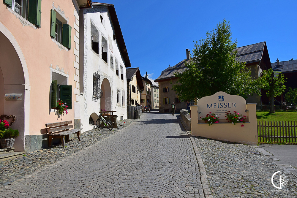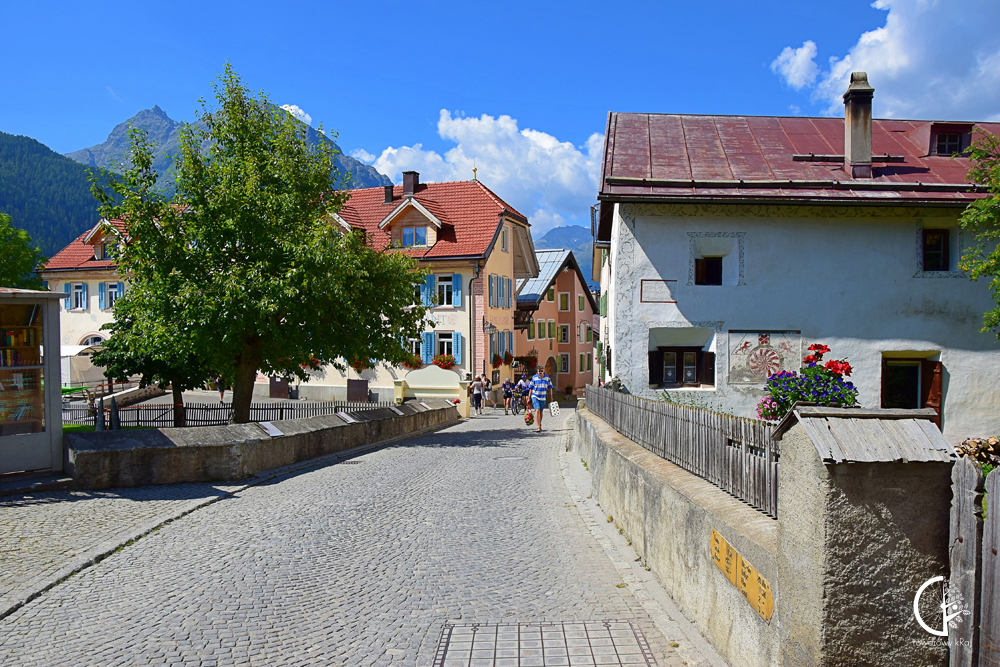 Tuż po wyjeździe z miasteczka Zernez widoki wyhamowują naszą żwawą jazdę. Poimy wzrok otaczającymi nas górami. Pierwsze kilometry to jazda w dół. Do czasu, kiedy z miasteczka Lavin rozpoczynamy mozolny podjazd do miejscowości Guarda. I podobnie, jak podczas pierwszej szwajcarskiej przygody Swiss Dream, posiadacze mijających nas rowerów elektrycznych kierują na nas wzrok, nie dowierzając, że nie mamy akumulatorów!