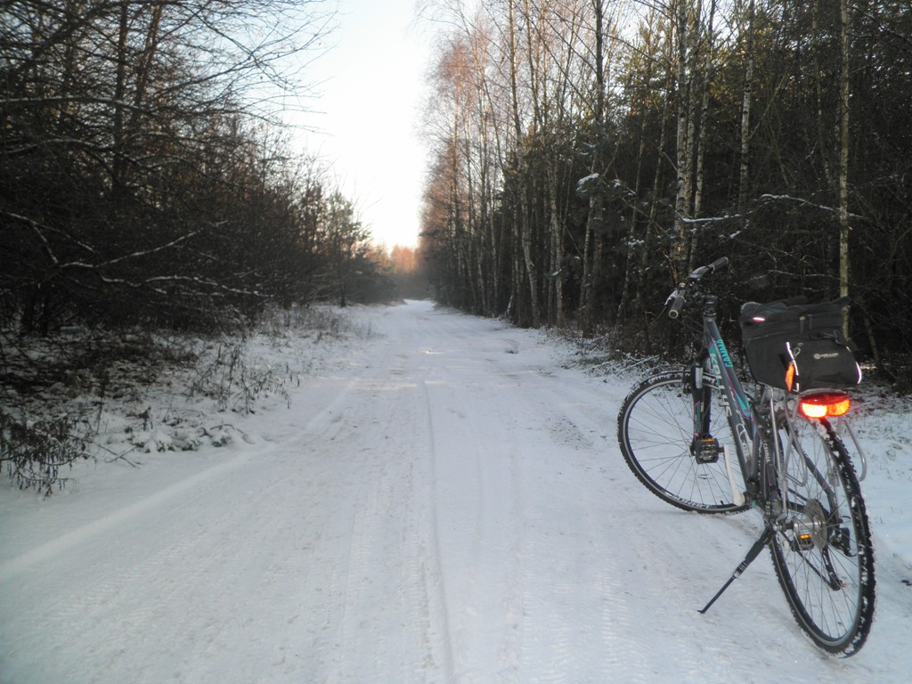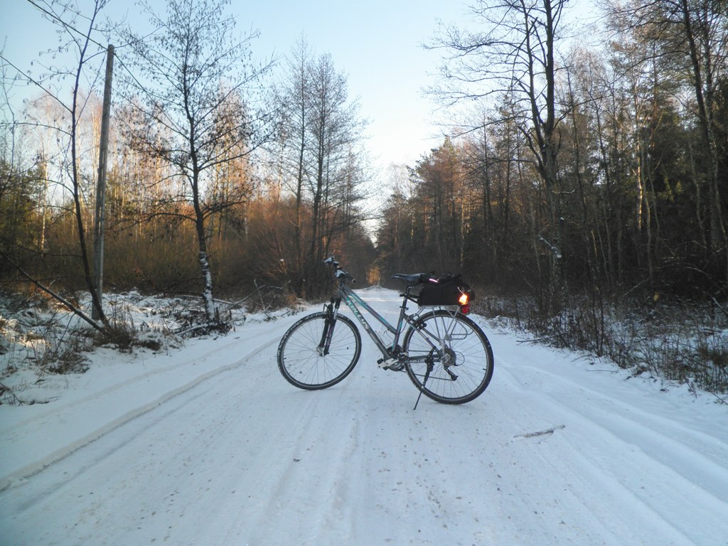 Wczorajszy dość intensywny opad śniegu nie zwiastował tego, ze dzisiaj mój rower ujrzy światło dzienne. Wracając późnym wieczorem z towarzyskiej nasiadówki brodziłam w białym puchu, po którym dzisiaj rano nie było już śladu, przynajmniej na miejskich chodnikach. Niedzielne słońce promieniejące od świtu było przyczynkiem do zerwania się na nogi i porwania na rowerową przejażdżkę. A co? Czy tylko trzy pory roku w postaci wiosny, lata i złotej pięknej jesieni są odpowiednie na rower? Nie! Każda aura jest dobra, przy odrobinie chęci, samozaparcia i właściwego ubioru. Z naszej dwójki, chęci i samozaparcie dzisiaj były tylko ze mną. Tak też odziałam się nieco cieplej niż zwykle, odkopałam z piwnicznego miszmaszu mojego crossa i pojechałam przed siebie. Miasto vs las