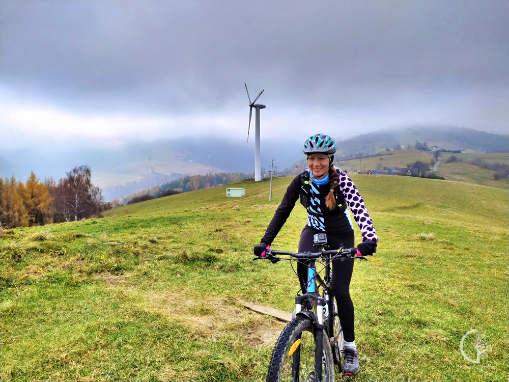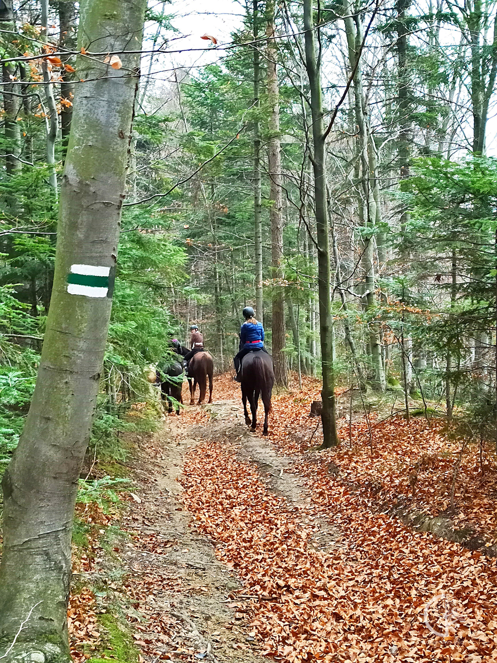 Kolejny etap wycieczki to ostry zjazd w dół pośród domostw najbliższej osady. Ta sielanka nie trwa jednak zbyt długo, bo oto dojeżdżamy do zielonego szlaku pieszego, który łączy się z niebieskim biegnącym na Przehybę. Alternatywą zjazdu ze wzgórza Połom może być wybór żółtego szlaku pieszego, który łączy się z obranym przez nas szlakiem zielonym, oszczędzając nieco pokonywanie wysokości.