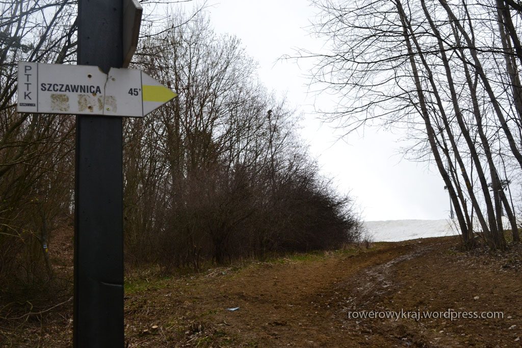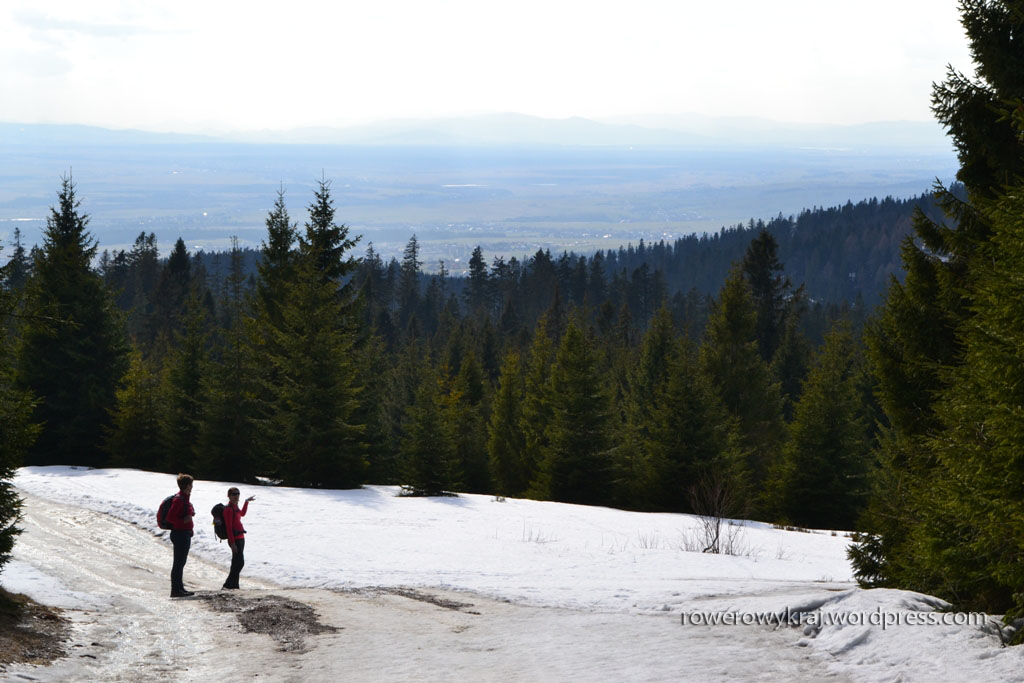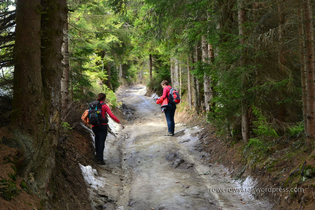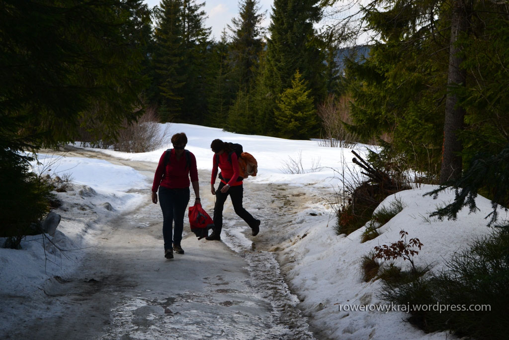 Jak już uporaliśmy się ze ślizgawką, to wyżej czekał śnieg. Przeprawa przez ciężkie topniejący zwały zszarzałego opadu, pod którym zaś na nasze podeszwy czekało błocko, nie należało do najprzyjemniejszych.