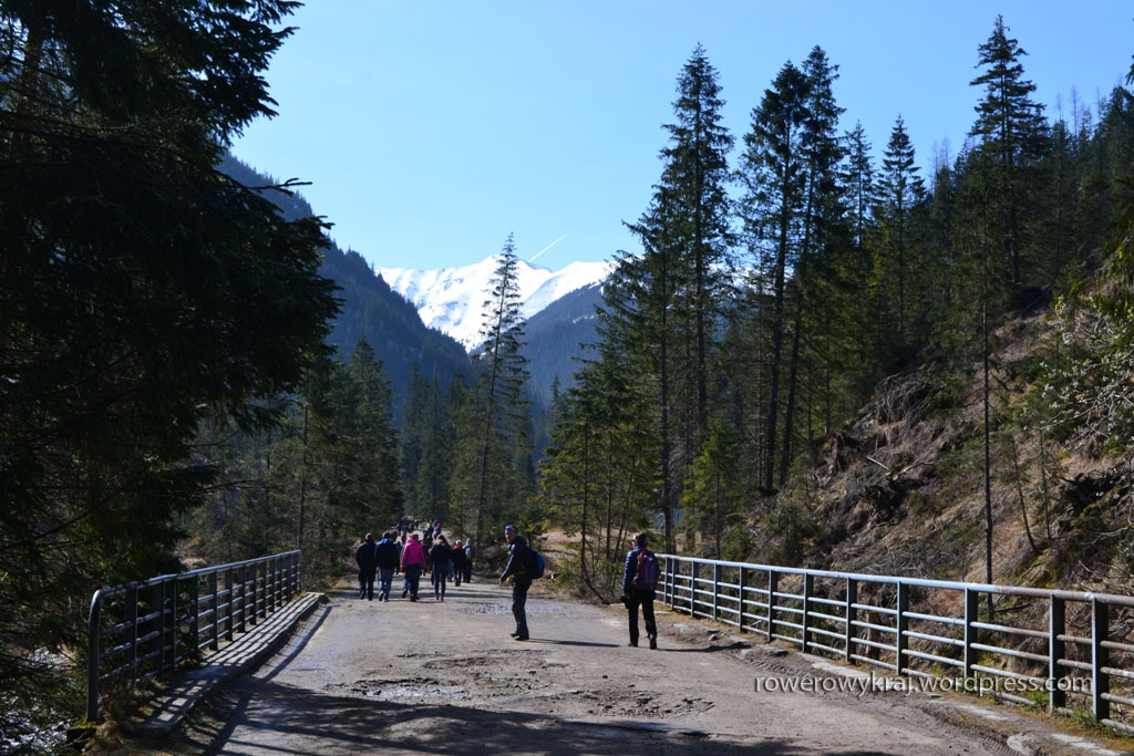Dojechaliśmy na przedmieścia Zakopanego skąd dalej busem do centrum. Tu już nie jest tak pusto i sielsko, jak na ulicach Szczawnicy było dzień wcześniej. Busy zaludnione turystą maści wszelkiej, a sam wlot do Doliny Chochołowskiej zaczopowany już na maksa. Nie można jednak mówić o potopie, jaki dzień później dokonał się w tym samym miejscu. Przed nami po bilet w kolejce stoi co najwyżej 5 osób, za nami też kilka w porywach do kilkunastu. Na szlaku jest gęsto, ale nie obijamy się barkami. Być może jeszcze zbyt wczesna godzina, apogeum nastąpi później. Jakby nie było, zagęszczenie ludu wędrownego dnia sobotniego, dalekie jest od obrazka, który stał się newsem wszystkich wiadomości dnia kolejnego.