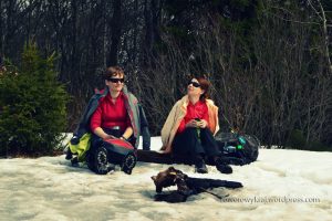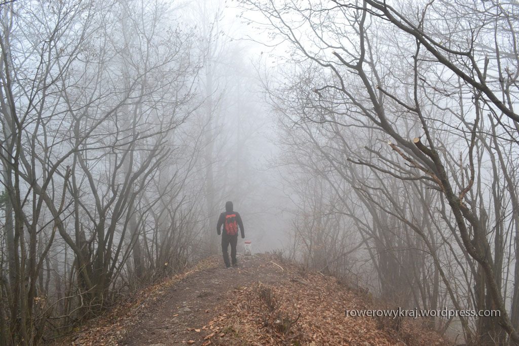 Słońce przegrało z napierającymi ciemnymi chmurami, szum potoku odszedł w niepamięć, za to nastał czas szumu targanych wiatrem drzew. Ptaki pochowały swe zadki w ciepłych dziuplach, a nasze zadki mimo dość ciepłych ubrań przehulał wiatr a ściślej mówiąc pierońska pizgawica. Zamiast białych tatrzańskich szczytów widzieliśmy białe mleko mgły. Dając wyraz naszemu zadowoleniu, utożsamiając się z otaczającą nas bielą, zaczęliśmy radośnie szczekać naszymi białymi zębami.