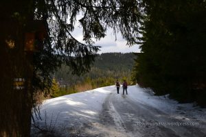 Do Nowego Targu dotarliśmy w czwartek w godzinach przedpołudniowych. Jak widać nie grzeszymy przedwczesnym wstawaniem. Gorce to dla mnie nieodkryty jeszcze świat. Trudno więc było snuć domysły, jak bardzo wymagające będzie podejście, ile śniegu na górze można się spodziewać i co w ogóle nas czeka. Wystartowaliśmy ok. godz. 11. Według wskazań mapy pokonanie trasy żółtego Szlaku Papieskiego na Turbacz zajmuje nieco ponad 3 h. Nam zajęło dłużej.