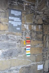 Mimo tłumów, dajemy radę usiąść na ławeczce przy kapliczce. Gorzej jest z miejscem siedzącym w schronisku, co nie odwodzi nas od stania w kolejce po gorącą kawę.
