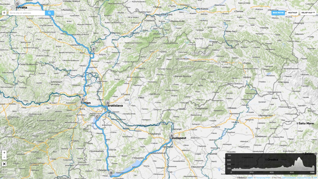 Nasz koncept, po powierzchownej analizie trasy przybrał nieco wyraźniejszą formę. Nie na tyle wyraźną jednak, by zaplanować każdy dzień, początek i koniec, czy choćby minimum programowe. Ustaliliśmy jedno: Teleportujemy się jakoś do Czech, dokładniej czeskiej Pragi skąd rozpoczniemy naszą rowerową przygodę. Gdy już z bliska poznamy miasto pojedziemy dalej na południe, by osiągnąć wyznacznik dalszej podróży – Dunaj. Naddunajska trasa rowerowa będzie nas prowadzić przez trzy kolejne europejskie stolice: Wiedeń, Bratysławę i Budapeszt. Skończymy… tego nie chcieliśmy sztywno zamykać. Jeśli będzie to Budapeszt – świetnie. Jeśli się nie uda, płaczu też nie będzie.