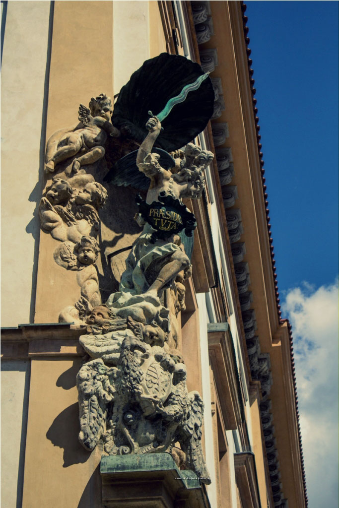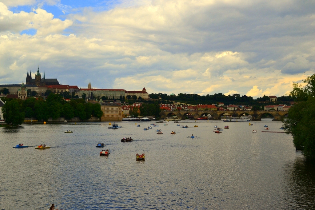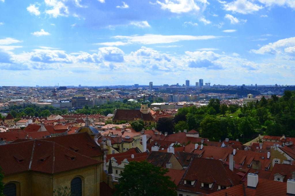 Meldujemy się w Pradze 30.07.2016r. w godzinach przedpołudniowych. Jest sobota. Gorące powietrze uderza w nozdrza, gdy wysiadamy z busa, którym do Pragi przywieźli nas znajomi. Poza żarem z nieba uderza nas coś jeszcze. Widok. Pejzaż stolicy Czech w kolorze ceglastej czerwieni. Ceramiczna dachówka przeplata się z zielenią drzew. Jednolita, jednobarwna i równomierna zabudowa domostw, rezydencji, kamienic, kamieniczek, kościołów i pałaców nie jest poszarpana nowoczesnością szklanych domów. Widok schodzącej coraz niżej ceglastej dachówki zdaje się być karmazynową rzeką wpływającą do niebieskich wód Wełtawy. Jesteśmy na zwieńczeniu zielonego wzgórza Petrin Mniejszej Dzielnicy (Malá Strana).