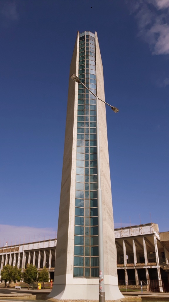 - wentylacyjna wieża a w tle Stadion Strahov