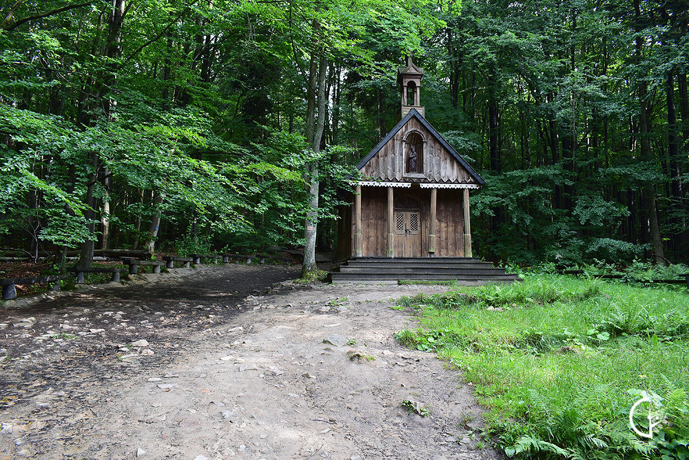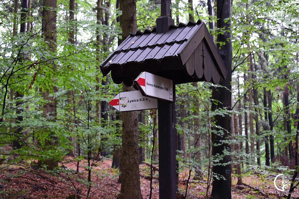 Od Świętej Katarzyny na Łysicę prowadzi Główny Szlak Świętokrzyski oznaczony kolorem czerwonym. Tuż za bramą wyznaczającą wejście na teren Świętokrzyskiego Parku Narodowego mijam źródełko, które w legendzie ma moc uzdrawiającą chore oczy. Tuż za nim drewniana kapliczka św. Franciszka. Pierwsza kapliczka została wybudowana w 1641 roku przez bernardyńskich braci świeckich z klasztoru w Świętej Katarzynie. Dzisiejsza powstała prawdopodobnie w XIX wieku.