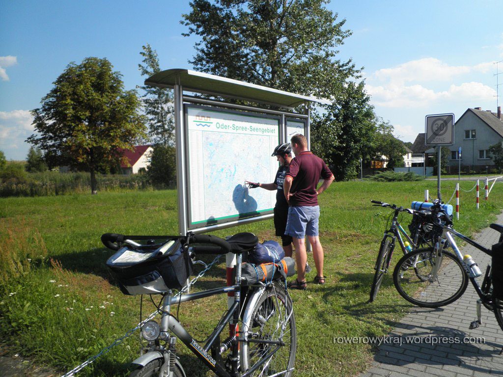 Z Neuzelle kierujemy się na zachód, a potem na północ. Znaczna większość trasy to urok komfortowej jazdy pośród cienia lasu i krajobrazu pól. Tam, gdzie szlak wiedzie drogą dla samochodów, czujemy się bezpiecznie, jakbyśmy to my byli uprzywilejowanymi uczestnikami ruchu. Nikt nie używa klaksonu, nikt nie spycha do rowu, wszyscy zwalniają i wyprzedzają w bezpiecznej odległości. Wieczorem, docieramy do Beeskow. I tu zaczynają się schody…