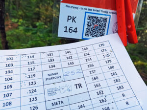 Poza mapą dostajemy oczywiście, jak na każdych tego typu zawodach kartę startową. Ta tutaj jest jednak dość duża z bardzo mnogą liczbą punktów kontrolnych do potwierdzenia. Dlaczego ich aż tyle? O tym dowiemy się za chwilę. Zanim jednak odpowiedź na nasze wewnętrznie zadawane pytania wypowiedziana zostanie z ust organizatorów w trzecią rękę (w jednej mamy już 2 mapy A3, w drugiej kartę startową niemal A5) dostajemy kartkę z nazwami przypisanych do numerów punktów kontrolnych nazwami. Trochę tego dużo, jak na rowerową jazdę i mapnik. Nie zrażamy się jednak w cale, bo każdy rajd na orientację, to nowa przygoda!
