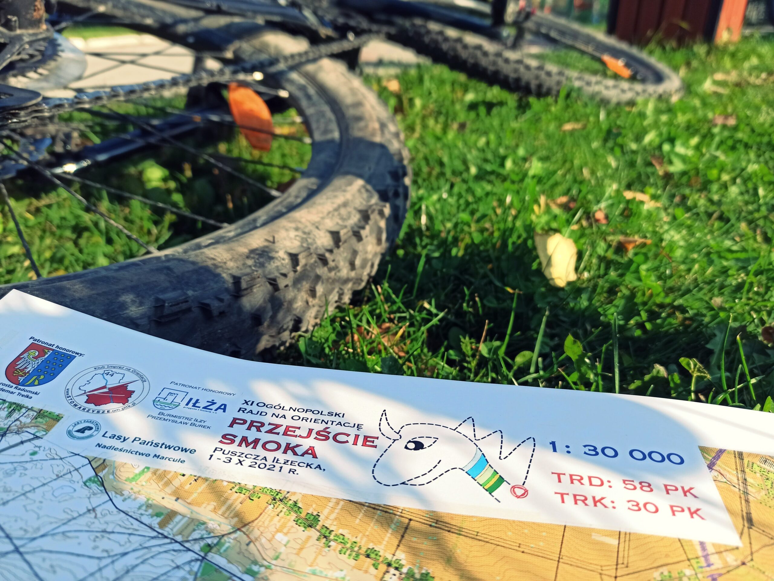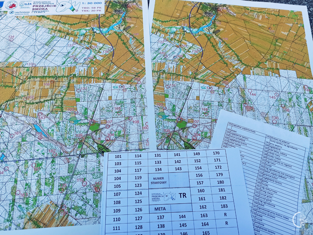 Drugie zaskoczenie na Przejściu Smoka to wielkość map. Dostajemy dość duży format A3 mapy w skali 30 000 i to w dwóch egzemplarzach! Ta opcja nie jest zbyt wygodna podczas rowerowego rajdu na orientację, ale przyjmujemy to wyzwanie z uśmiechem.