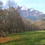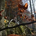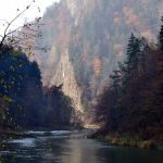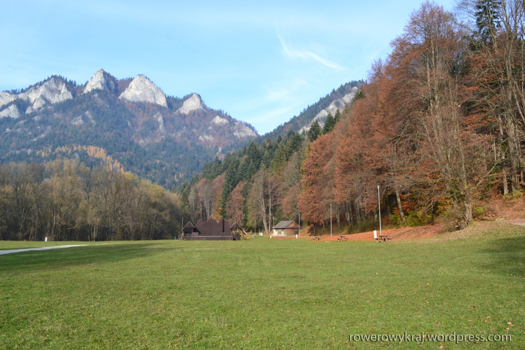 Pogoda nam sprzyja. Słońce radośnie spowija blaskiem przebarwione liście drzew. Betonowy parking, gdzie latem trudno o wolne miejsce, dzisiaj wita nas pustką. Słońce ciepło muska nasze twarze i jest całkiem ciepło. Mimo to na głowie ląduje chusta, na rękach rękawice a w sakwie ciepła bluza. W końcu to listopad, a za chwilę słońce będzie bawić się z nami w chowanego podczas przemierzania Drogi Pienińskiej wzdłuż zakosów i meandrów Dunajca, pomiędzy zastygłymi ścianami Białej Skały, Hukowej Skały, Wylizanej czy Samej Jednej.
