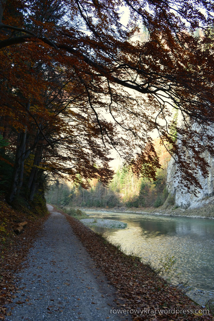 My wróciliśmy. Tej jesieni. Słoneczne dni pierwszej połowy listopada wykorzystaliśmy w najlepszy dla na sposób – rowerowo. Co prawda nie była to kilkudniowa wycieczka na dwóch kółkach, ale krótkie kilkugodzinne kręcenie to tu, to tam – gdzie właśnie mieliśmy okazję bywać. A wracając z Białki Tatrzańskiej nie mogliśmy ominąć szeroki łukiem Szczawnicy, Dunajca i Drogi Pienińskiej , w których się zakochałam ubiegłej jesieni. To też wylądowaliśmy w Szczawnicy, by pozostawić na parkingu swoje auto i przesiąść się na rower i ruszyliśmy na słowacką cyklocestę Przełomem Dunajca.
