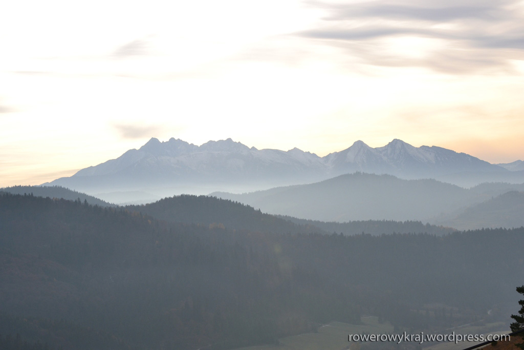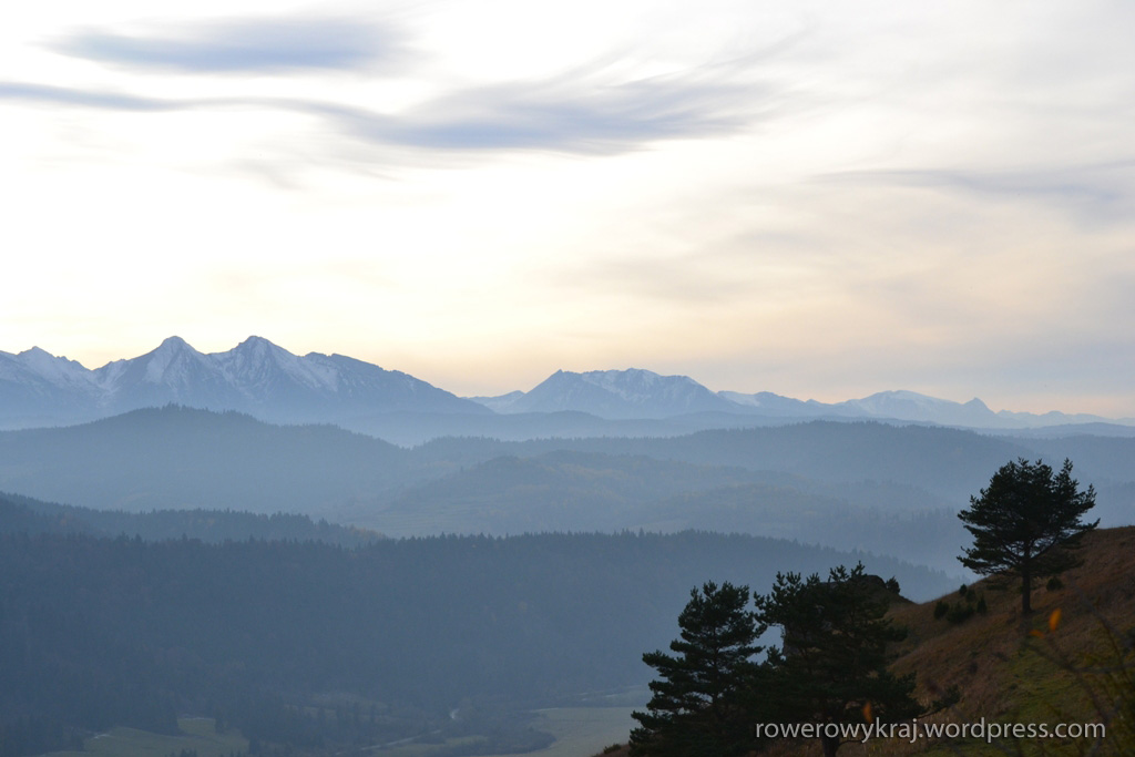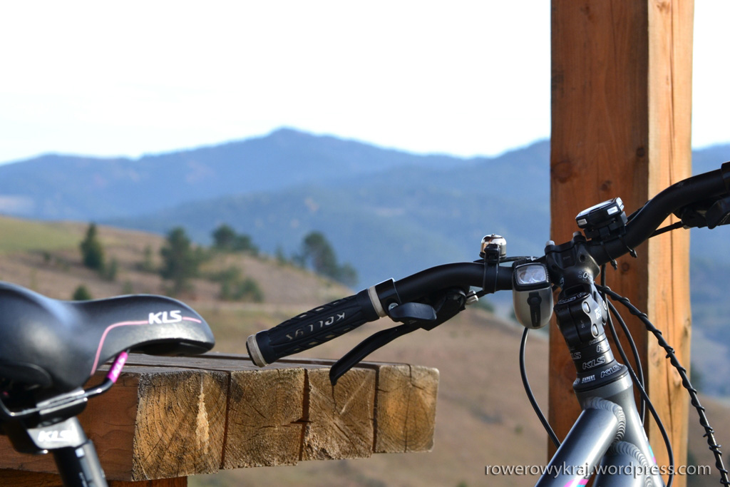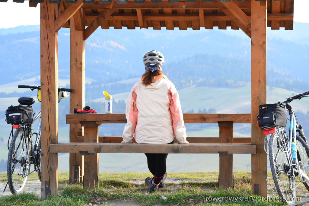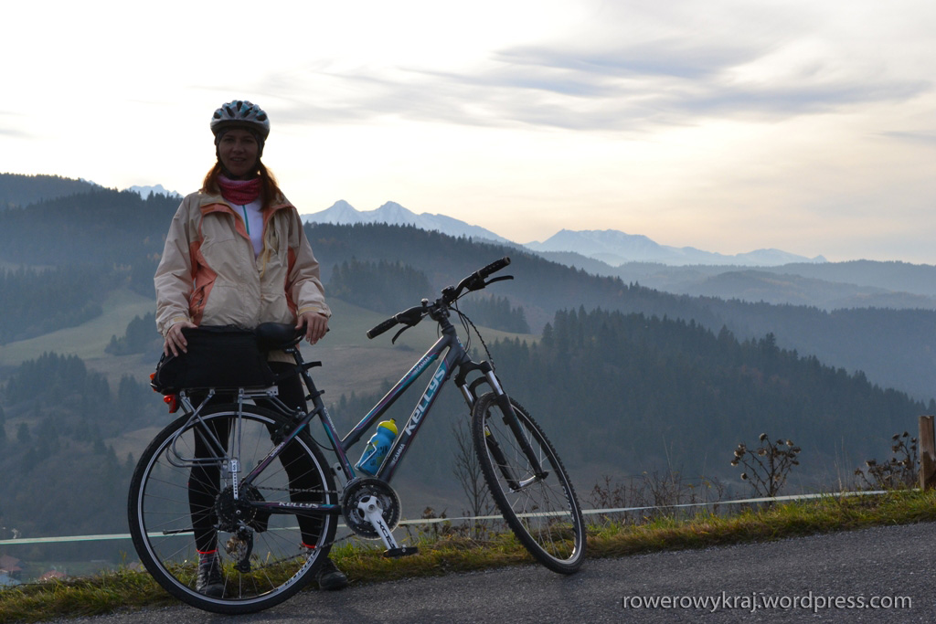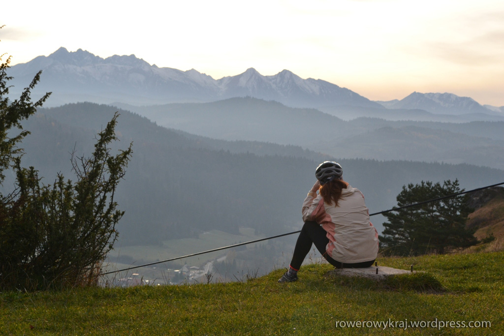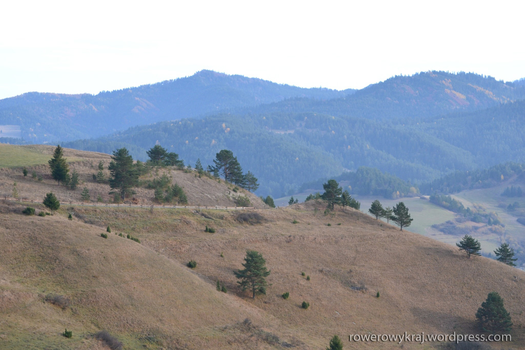 Bardzo ślimaczym tempem wspinamy się pod górę. Widoki i aura sprawiają jednak, że chce się pedałować i cieszyć się wszystkim dookoła. Jednak podjazd się wydłuża, a nachylenie coraz bardziej pionuje. W końcu się niemal poddajemy, gdy nagle z megafonów zostawionego w dole Wielkiego Lipnika zaczyna dobiegać nas muzyka. Zawsze się zastanawialiśmy, na cholerę te megafony umieszczone na ulicznych słupach słowackich wiosek, wsi i miasteczek. Nadal nie wiemy po co, ale teraz czułam się, jakby zagrały tylko dla nas. Jakby ktoś, widząc z dołu nasze trudy pokonania ciężkiego podjazdu, specjalnie włączył te ludowe rytmy, by dodać nam powera. Na tej bezleśnej przełęczy byliśmy tylko my. Żadnego samochodu, żadnego rowerzysty. Wszechogarniająca cisza, ostatnie schodzące coraz niżej promienie słońca zwiastujące bliski koniec dnia. W dole uśpione miasteczko i nagle ta muzyka. Wartka melodia unosząca się pomiędzy zboczami gór towarzyszyła nam przez kilka minut i jakby podążała za naszym śladem. Przed nami pejzaż Pienin i Gorców, za nami Spiska Magura.