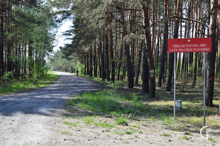 Wygodny dukt wiedzie pośród dostojnego drzewostanu. Trakty Spalskiego Parku Krajobrazowego są wygodne. Na jego ścieżkach spotykamy rowerową rodzinę, której najmłodsza latorośl smacznie śpi w rowerowej przyczepce. Rozmowa z lokalnym, rodzinnym klanem potwierdza nasze pierwsze wrażenie i przypuszczenia, że dalej będzie równie pięknie i wygodnie!