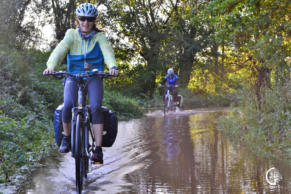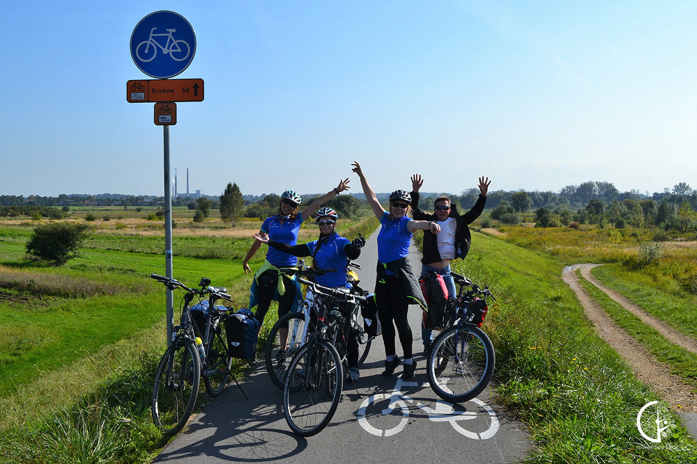 Rozradowani zmagamy się z oporami powietrza i mkniemy w kierunku Krakowa po wzorcowo przygotowanej trasie rowerowej. Gładki asfalt na niektórych odcinkach ustępuje szutrowi. Po raz kolejny zmagamy się także z zalanym po obfitych opadach odcinkiem trasy. A mimo to, nie tracimy przyjemności z jazdy.