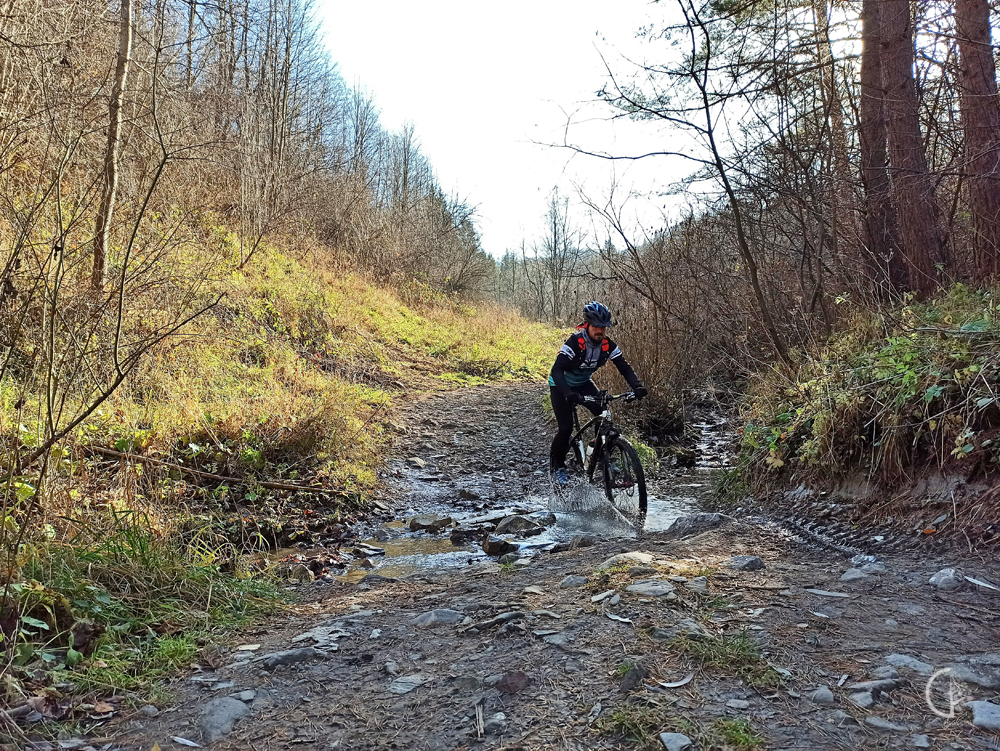 Gdy zdaje się, że już mamy za sobą najtrudniejsze, to chyba nie. Bo właśnie zmienia nam się nawierzchnia na taką z luźnymi kamieniami i bystrze meandrująca między nimi wodą.